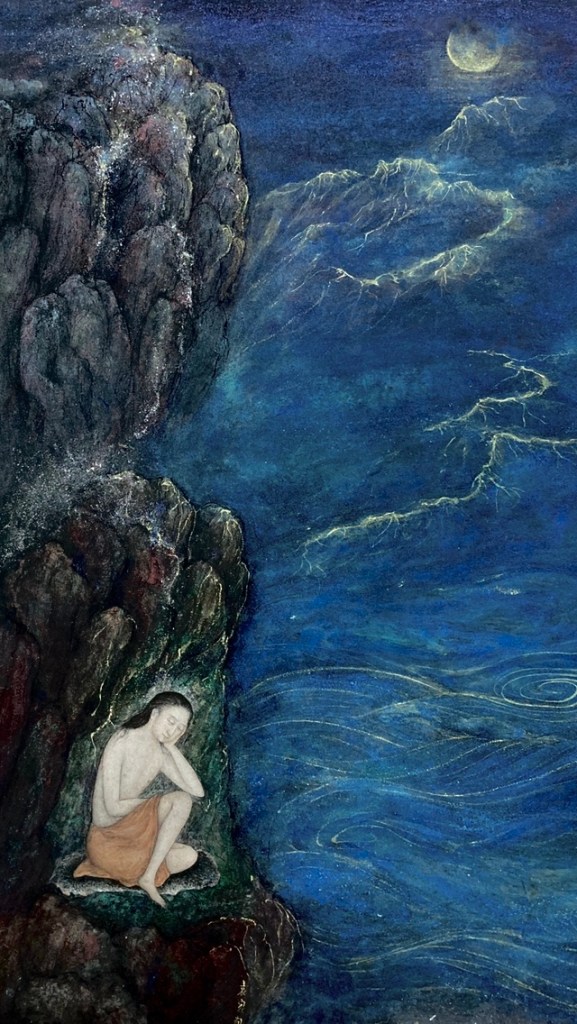 These miniature works were created as I explored spirituality in relation to our mortal life, a temporary abode in the passage from one place to another. The pictorial space, made of intricate details, is also a space where viewers can immerse their sense of being and reflect upon the nature of our presence, the idea of consciousness not as functions of the brain, but as manifestations of an ultimate reality.
