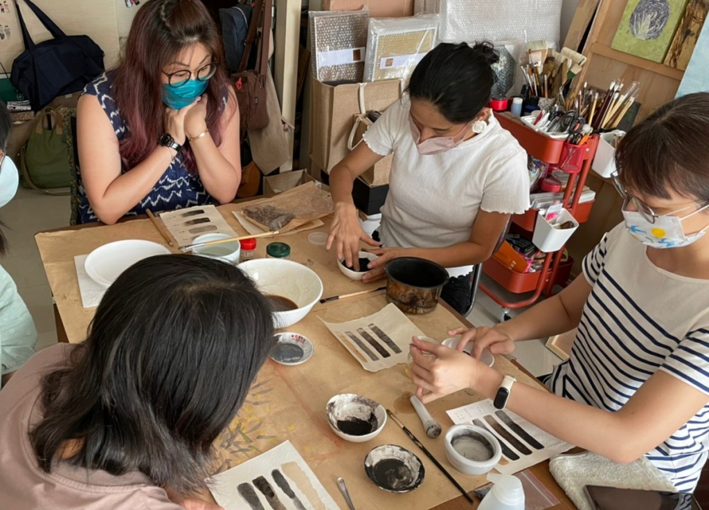 The workshop shed light on the very medium for traditional Chinese painting and calligraphy – ink, and participants were able to relate to their own practice, linking it to everyday materials, and learned new ways of expression through materials and processes.
